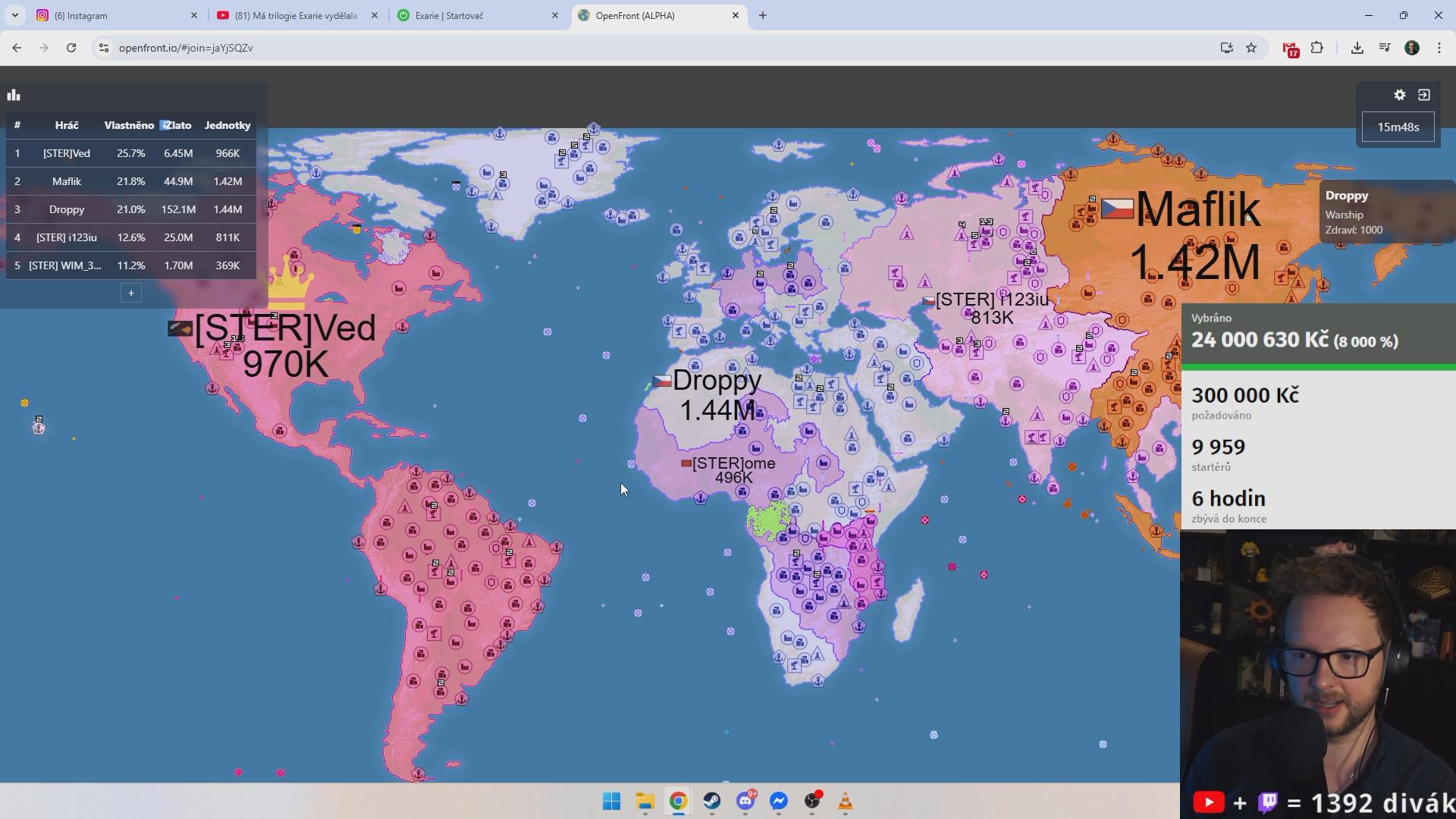 10. 8. délka streamu 02:47:30 přibližný čas streamu 16.51–19.39 nejvíce sledujícíchsleduj. 886 Největší CZ/SK turnaj v OpenFront! Přidej se a staň se legendou! !ROG !kniha Hry: OpenFront