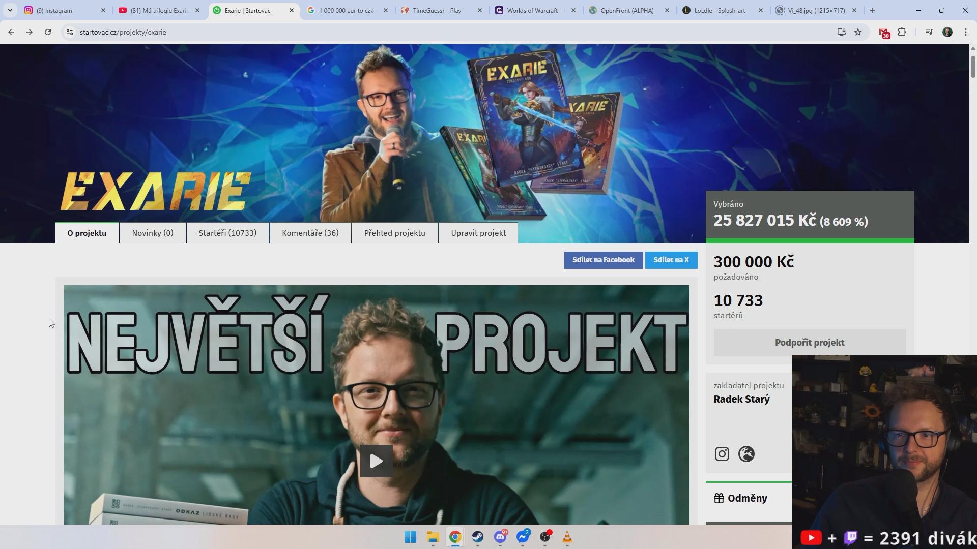 11. 11. délka streamu 02:25:50 přibližný čas streamu 16.56–19.22 nejvíce sledujícíchsleduj. 806 !exarie NEJÚSPĚŠNĚJŠÍ PROJEKT V HISTORII STARTOVAČE! Dnes kupujeme kamery a jdeme nahrávat divné věci... Hry: Voices of the Void